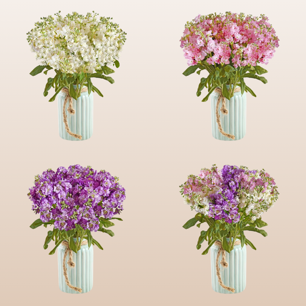 Spray Stock Flowers are stunning and are sure to enhance the ambiance of your event. The blooms create clusters of round, paired flowers that form at the top of each stem. The stock will add an exquisite touch to a classic romantic wedding or First Communion.