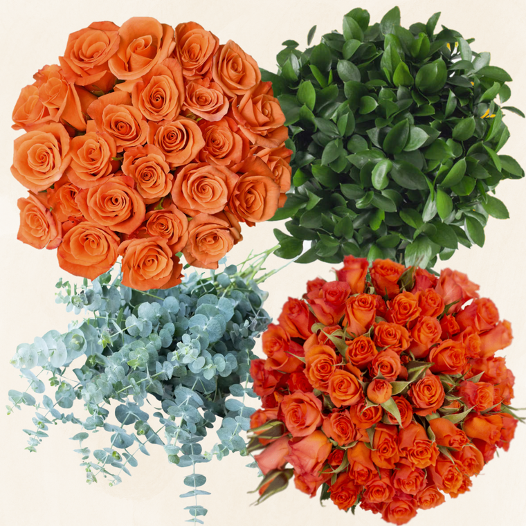 DIY Premium Rose Combo Box #4– Roses, Spray Roses, Eucalyptus & Ruscus – 200 Stems – Multiple Colors