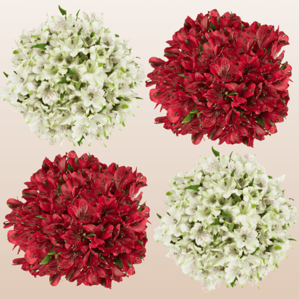 DIY Monochromatic Flower Combo Box #5 – Roses, Gerbera Daisies, Alstroemeria & Ruscus – 130 Stems – Multiple Colors
