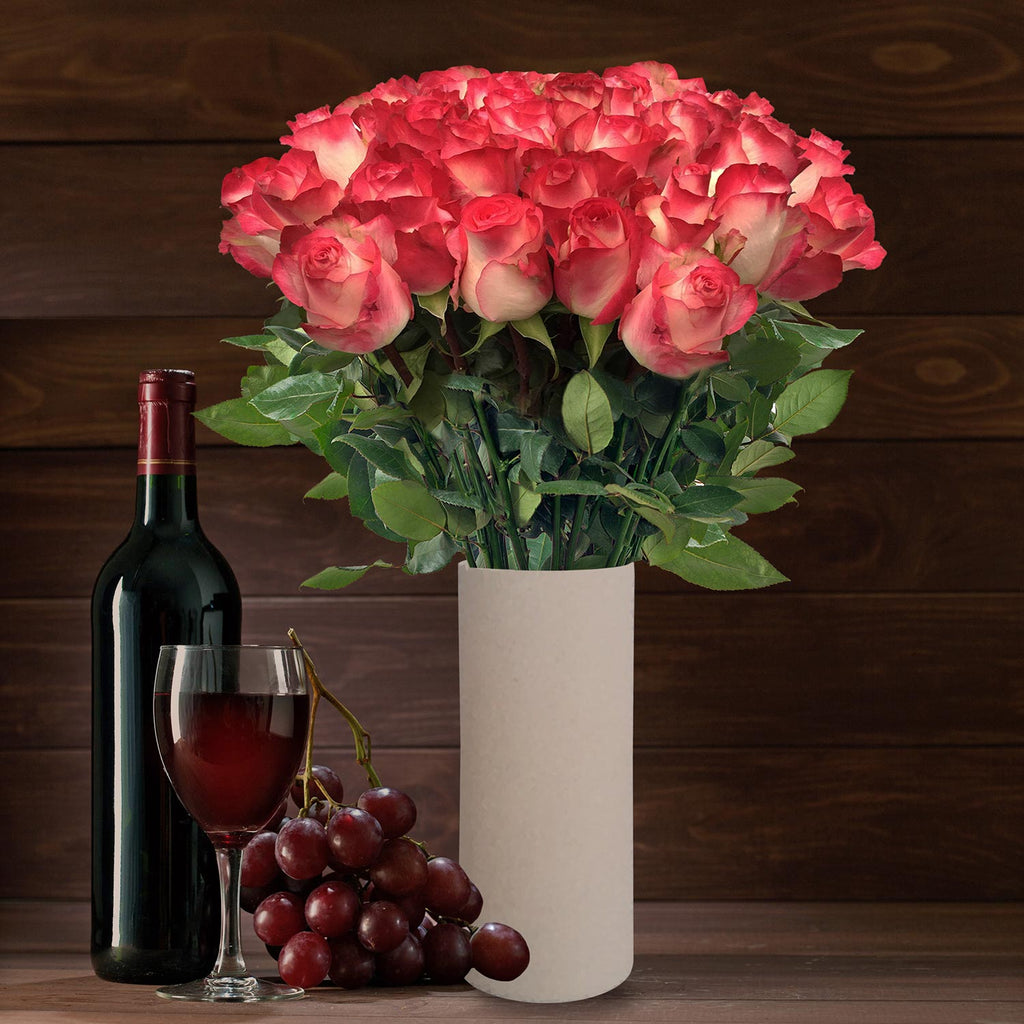✿ Roses are shipped in 25-stem bunches. Roses are packed in two layers to ensure protection during shipping. 12 roses on the top layer, 13 roses on the bottom layer. Count the stems to ensure you have received your whole order.✿ Roses are shipped fresh from the farm. They will have thorns and guard petals. Remove thorns and guard petals before arranging flowers.