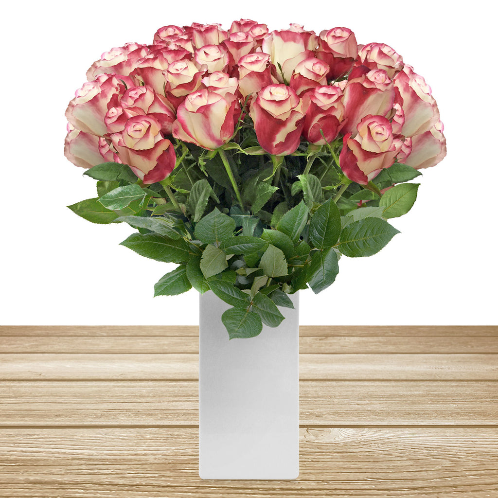 Roses Bicolor White and Red 60 cm Long Stem