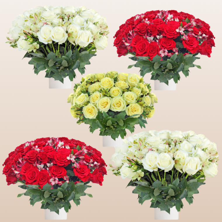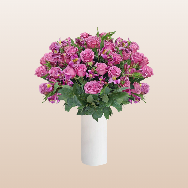 Centerpieces or arrangements with alstroemeria and standard roses. Alstroemeria Bridal bouquet. Peruvian Lilies are available in pinks, lavender, purple, yellow, peach, white and deep purple (as well as variegated colors). They are long lasting flowers that are great for bouquets, centerpieces, corsages, and boutonnieres.