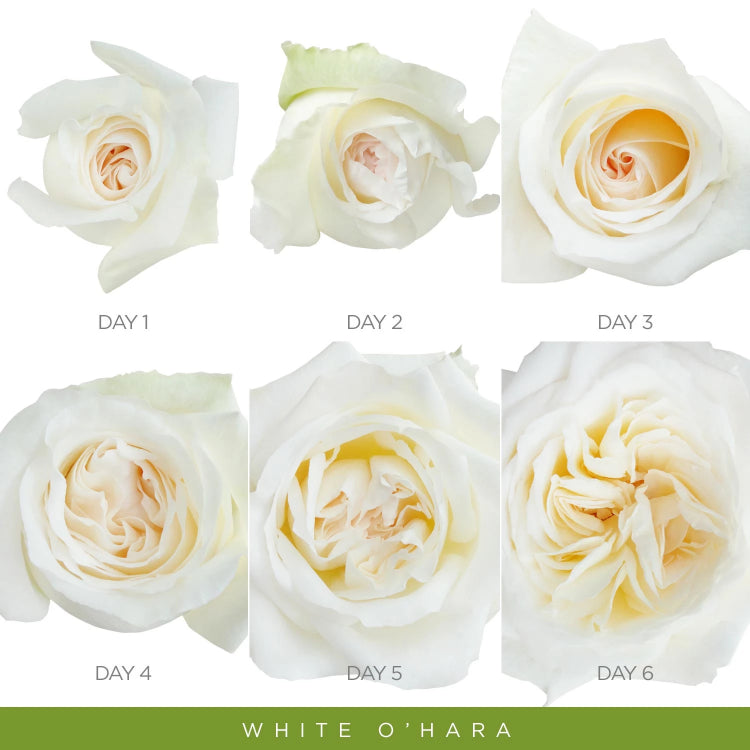 White O'Hara Garden Roses Delightful fruity scent with hints of lychee - charming in bouquets. Known as "the romantic wedding rose" or "English Roses" due to their nostalgic shape, like peonies. Great. alternative to David Austin Garden Roses.