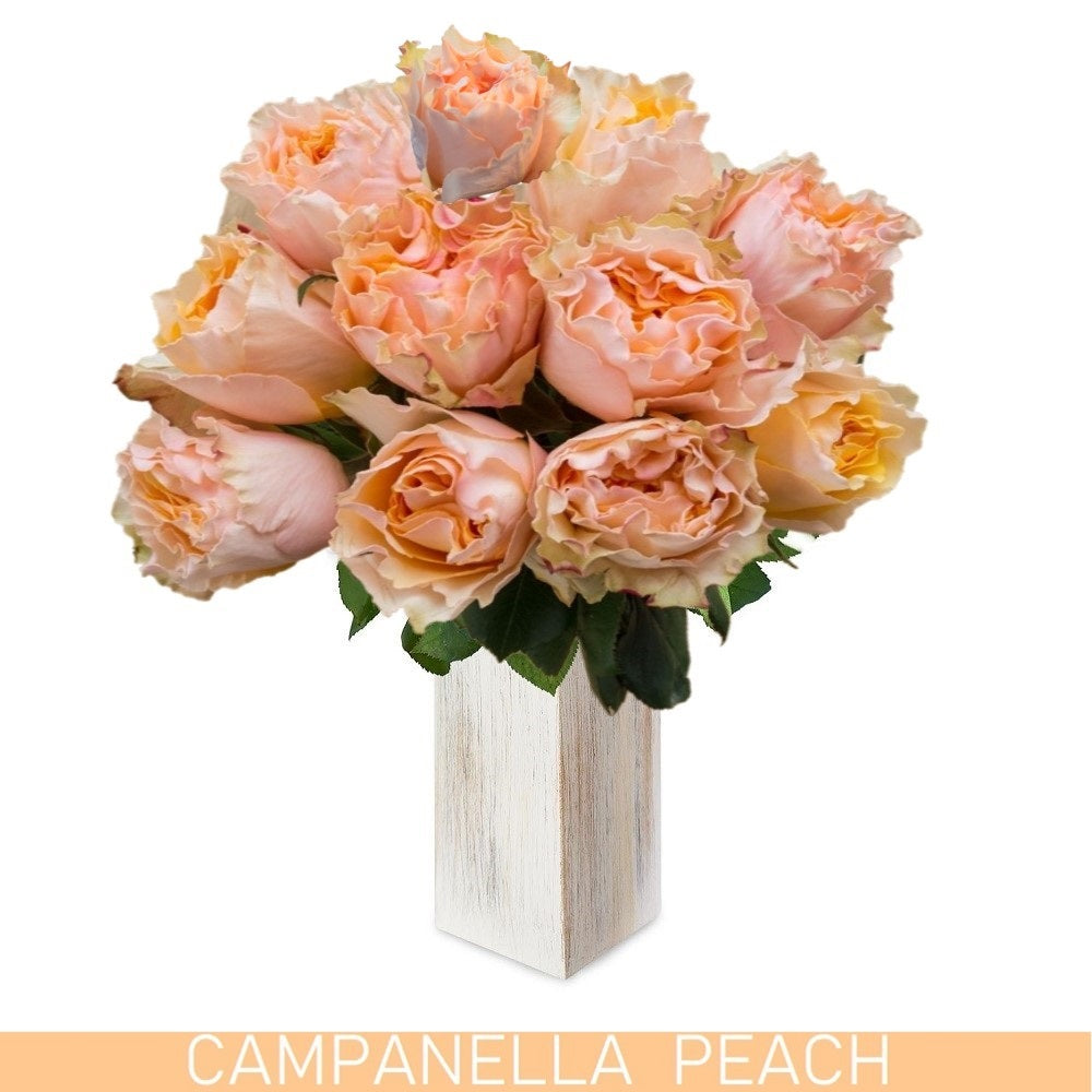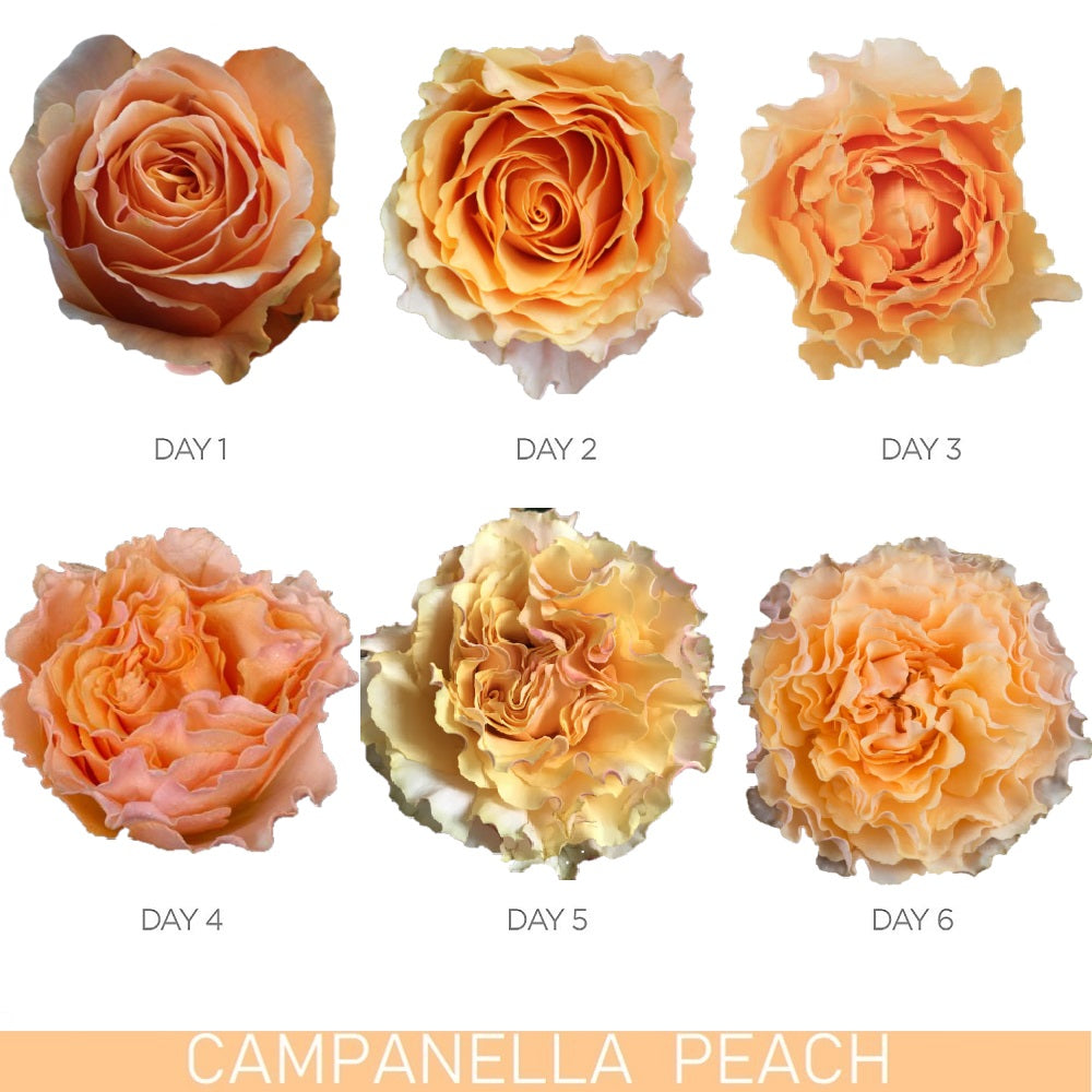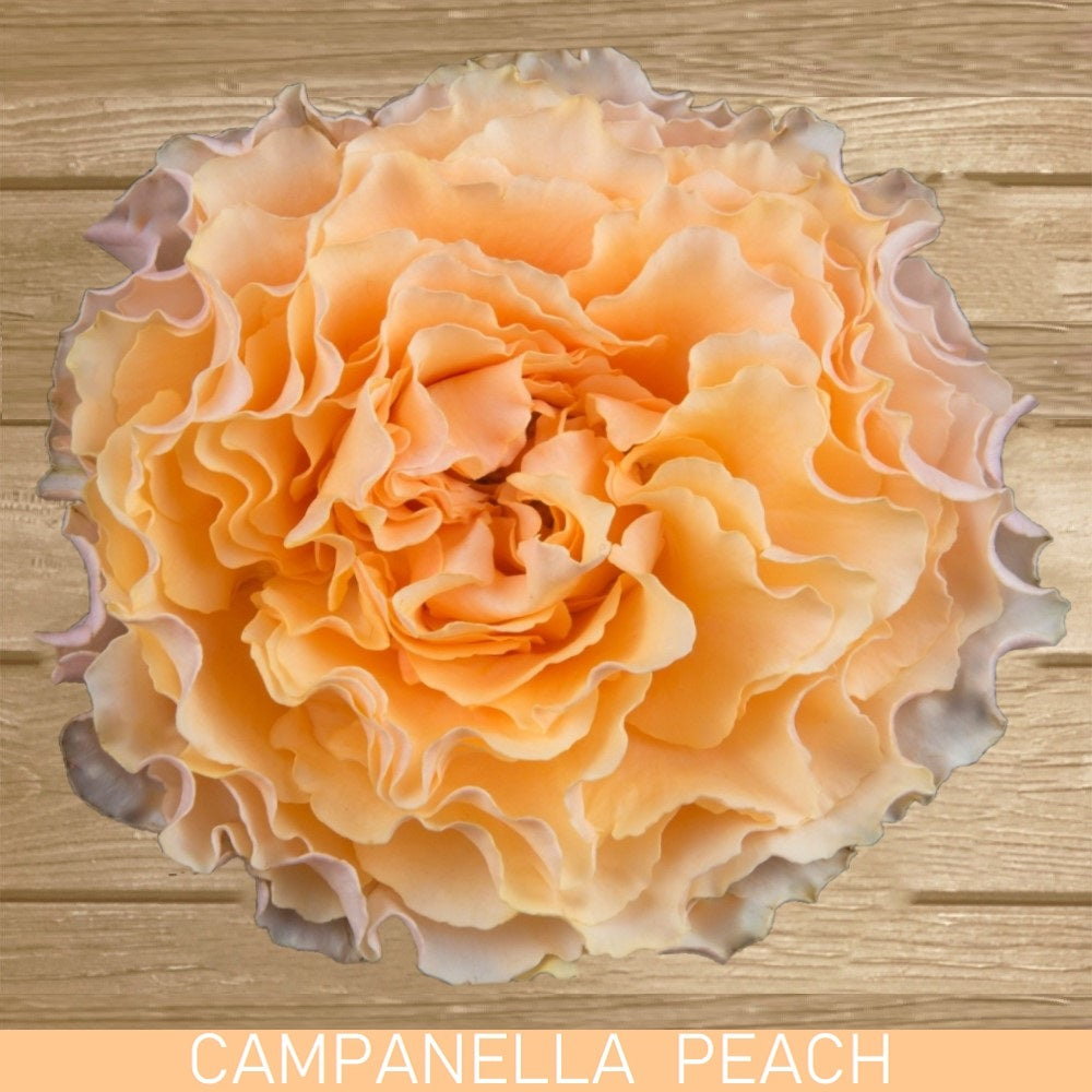 Campanella Peach roses have ruffled edges on the blooms. In comparison to regular roses, these ones are much bigger and have a stronger fragrance.