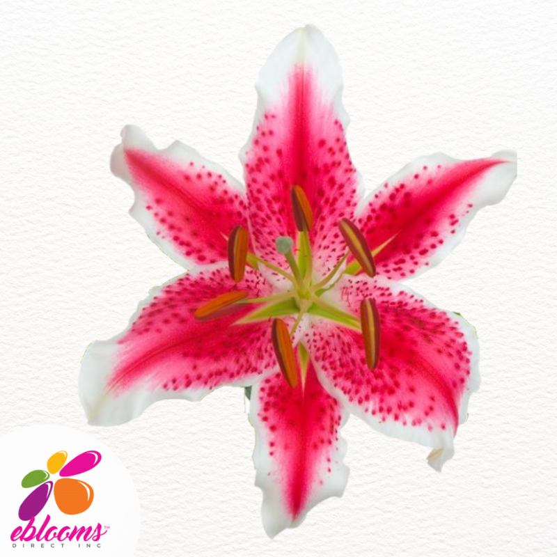 Starfighter Hot Pink Oriental Lilies are one of the most exquisite lily flowers for special occasions. Boasting a strong scent and a vibrant pink hue, the blooms feature ruby freckles throughout the petals and a white trim on the edges.