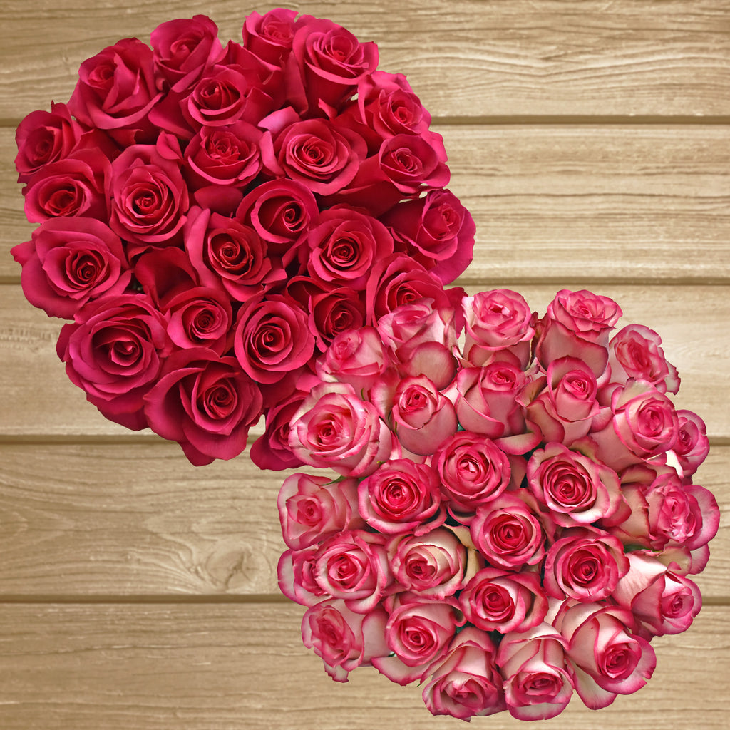 • Large Pack 100 Stems (50 Roses Hot pink + 50 Roses bicolor pink)